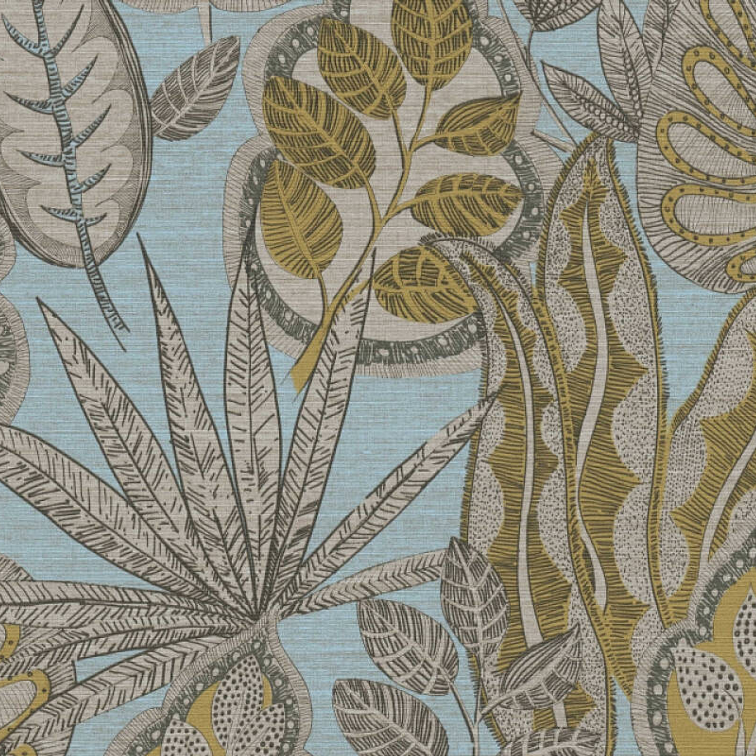 Los diseños van desde delicados motivos florales hasta hojas más grandes. La selección de colores es armoniosa, el aspecto original de los tejidos imita el lino y sus delicadas texturas que dan un aspecto exclusivo a sus muros. Sin duda es un Papel mural con una estructura delicadamente gofrada, de tacto rugoso y acabado mate.